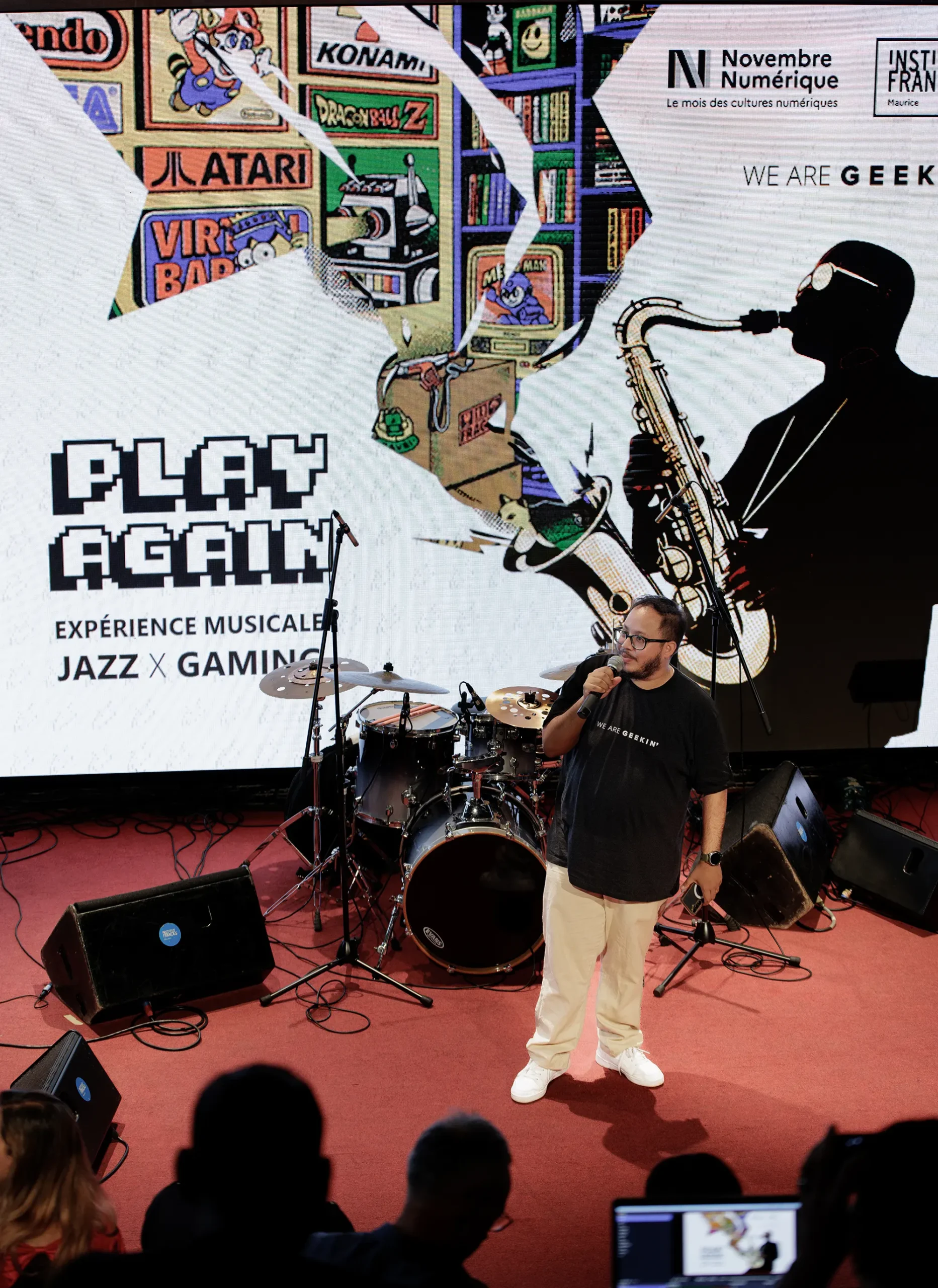 To close the Novembre Numérique 2025 season, We are Geekin’ produced a concert concept unique to Mauritius: “Jazz & Video Games.” This sold-out event at the Institut Français de Maurice proved that video game soundtracks are not just background noise—they are complex, emotional musical masterpieces worthy of the jazz treatment.